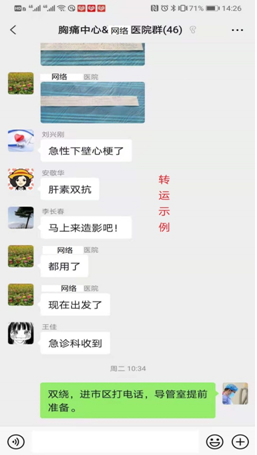 10:10由救護車轉(zhuǎn)出就診醫(yī)院,接診醫(yī)生上傳心電圖至胸痛中心微信群,