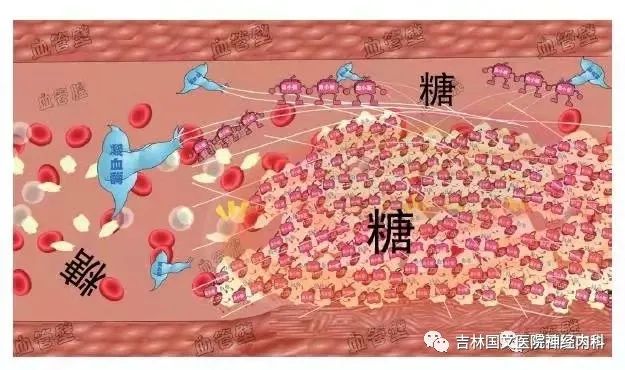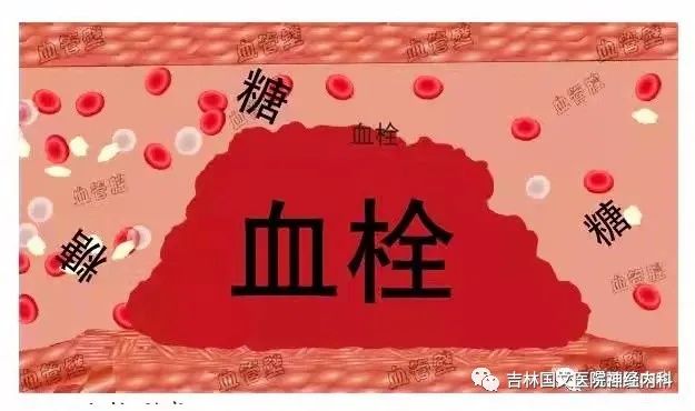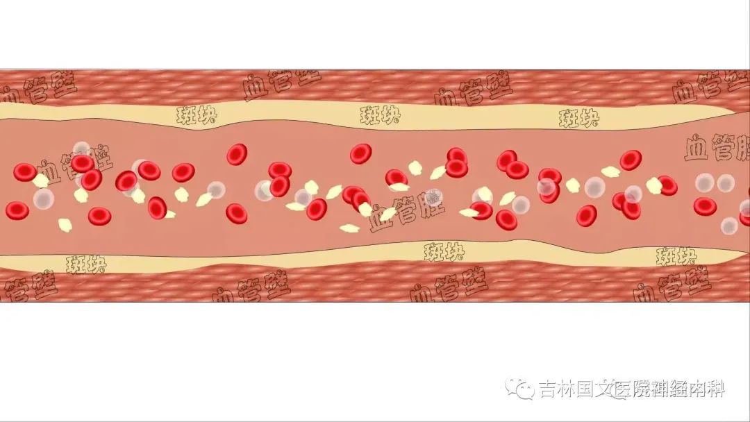 3.高血糖:糖尿病和動脈粥樣硬化的關(guān)系:血管壁破了之后,血糖高了,血小板開始特別“興奮”,來了特別多的血小板,粘附和聚集,形成了血栓。