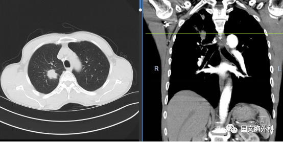周大爺,發(fā)現(xiàn)肺占位1個(gè)月。CT下觀察右肺上葉腫物延續(xù)至肺門,穿刺病理提示:肺鱗癌。有手術(shù)機(jī)會(huì),家屬同意手術(shù)治療。