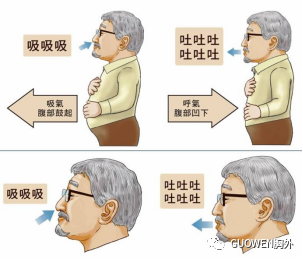 ?腹式呼吸:因為術(shù)后胸部有傷口,患者會出現(xiàn)不會胸式呼吸,指導患者在深吸氣末屏氣,然后縮唇,緩慢的通過口腔盡可能呼氣,以降低肋弓,使腹部往下沉。一般呼氣時間是吸氣時間的2倍左右。