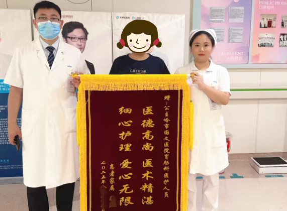 近日,國文醫(yī)院肝膽胰胃腸外科成功為一名79歲高齡的胃惡性腫瘤患者實施了高難度的腹腔鏡下根治性全胃切除術。出院前夕,患者家屬將一面承載著無盡感激的錦旗送到了科室,衷心感謝王得勝主任團隊精湛的醫(yī)術和護理人員悉心的照料。