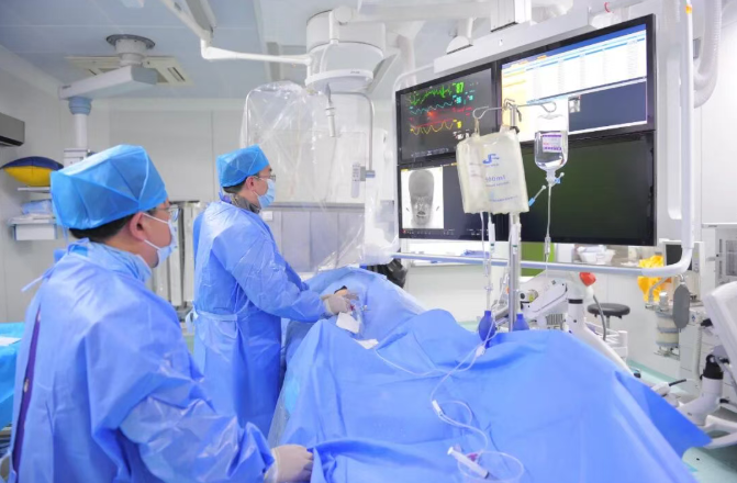 了解病情與方案后,姜大爺及家屬同意手術(shù)。丁金明團(tuán)隊聯(lián)合麻醉科、影像科制定個性化方案 —— 全麻下實施 “左側(cè)頸內(nèi)動脈起始處重度狹窄支架植入術(shù)”,并備好應(yīng)對并發(fā)癥的應(yīng)急措施。