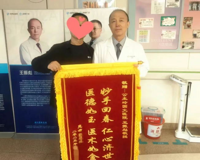出院后,身體已完全康復的張先生,再次來到醫(yī)院,將一面錦旗贈予北京專家王振彪教授,感激之情溢于言表。在守護百姓健康的道路上,國文始終以精湛醫(yī)術驅(qū)散病痛,以溫暖關懷傳遞力量,為患者生命保駕護航。